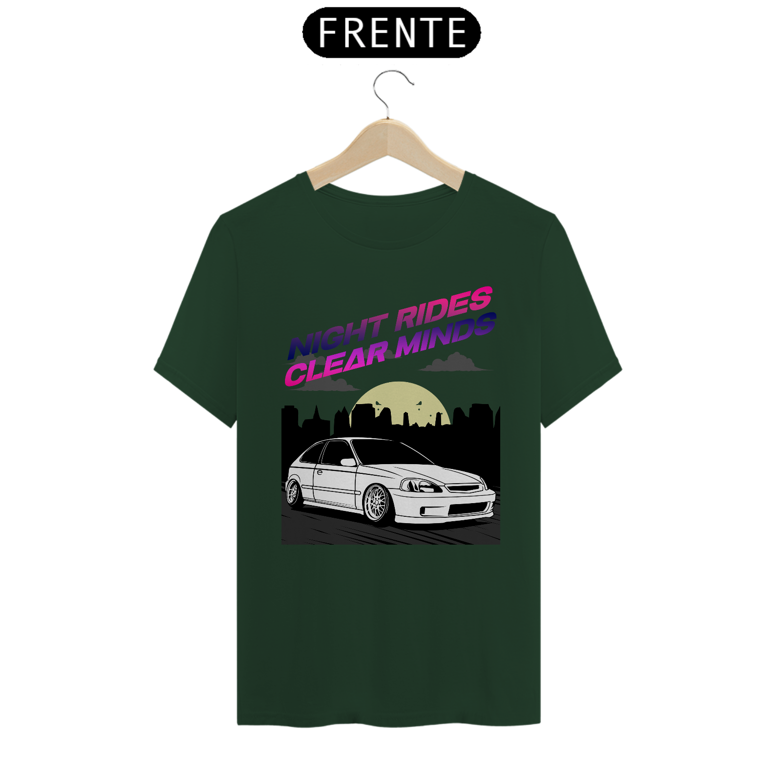 Tem coisa melhor do que pegar a estrada à noite, sem destino certo, só você, o som do motor e a mente leve? Essa camiseta automotiva é uma ode àquele momento mágico em que tudo se alinha: o silêncio da cidade, as luzes refletindo no asfalto e o Honda Civic EG guiando seus pensamentos na velocidade certa.
